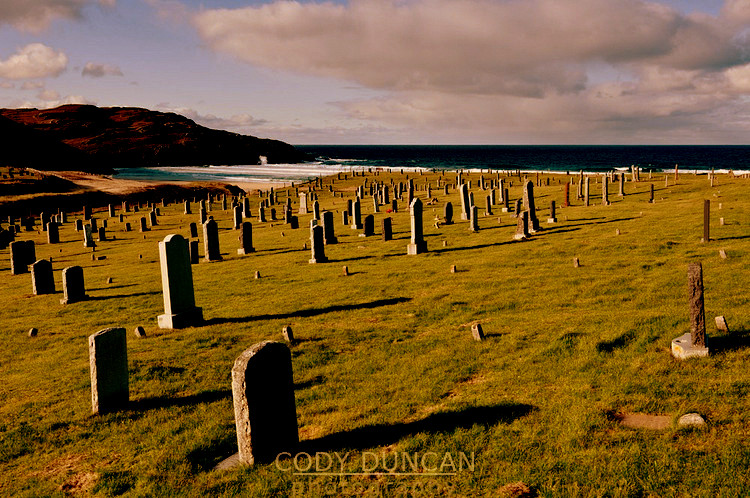 The moonlight was shining brightly on the cemetery and the black water of the firth. The old man was gone from his gravestone perch. I put my hand on the door latch, but something stopped me, perhaps my oft-unused common sense. I went back to my bedroll on the floor and lay listening to the melodic breeze playing through the trees.