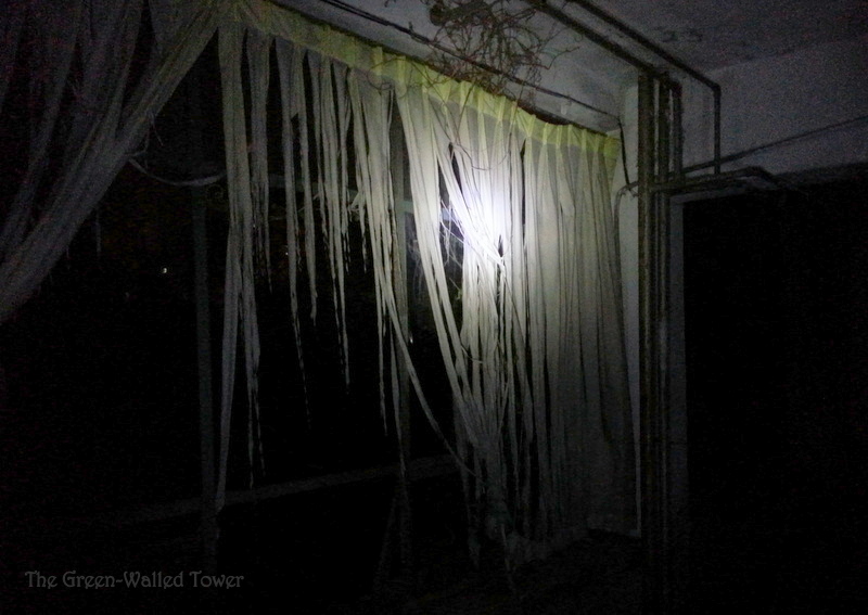 Suddenly, we were in the position of being in a haunted house at night with other people coming to see it. What would you have done? Well, what we did was stand without moving in the front room with our hoods up and wait for them to come. Honestly, I had no idea how they would react. They walked up, shined the flashlight in and…