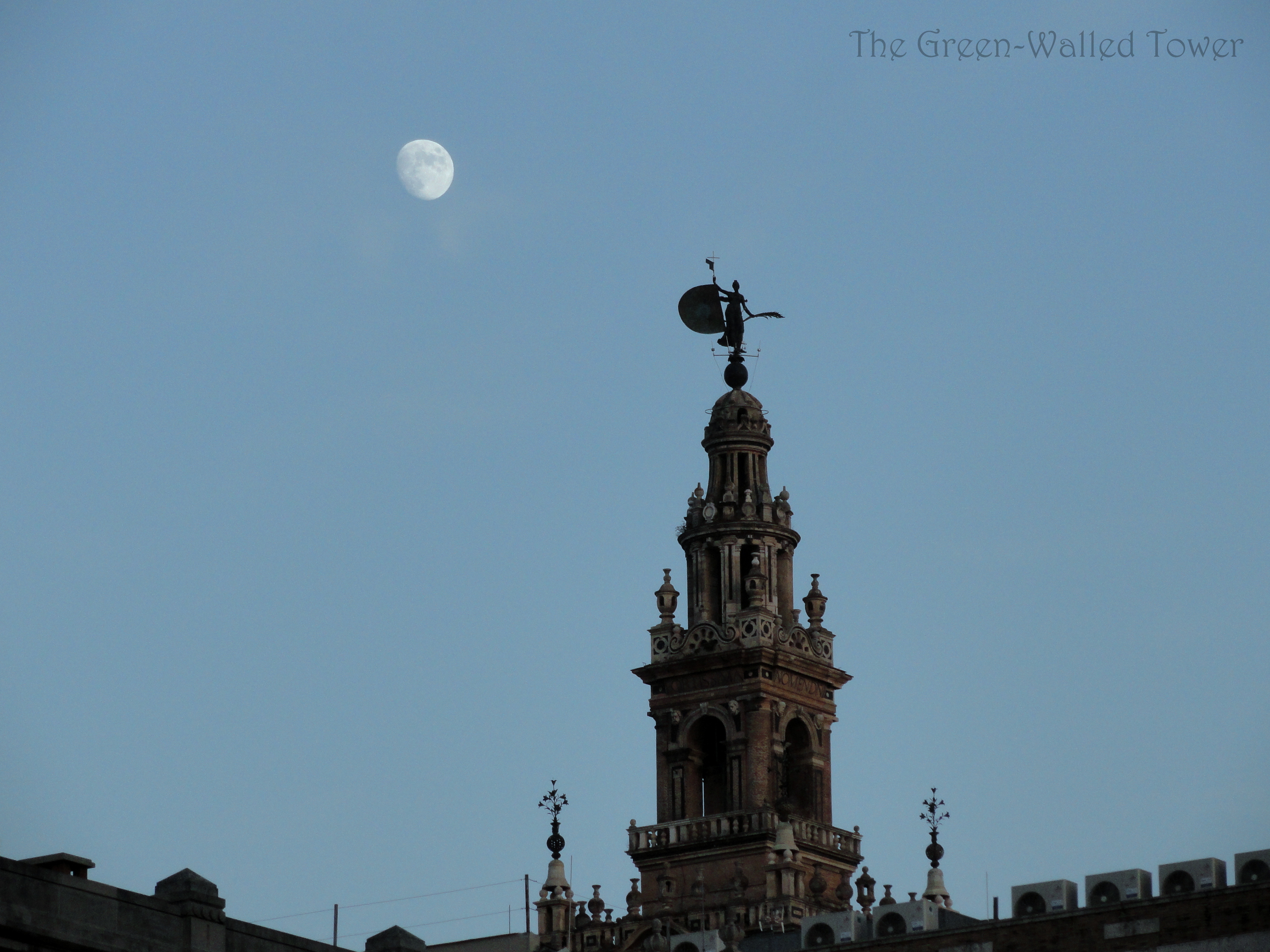 I was with Jabir ibn Aflah as he planned and built the Giralda where I now live and look down on the city that I have adopted over centuries of residence. It has grown slowly but I always stay the same.