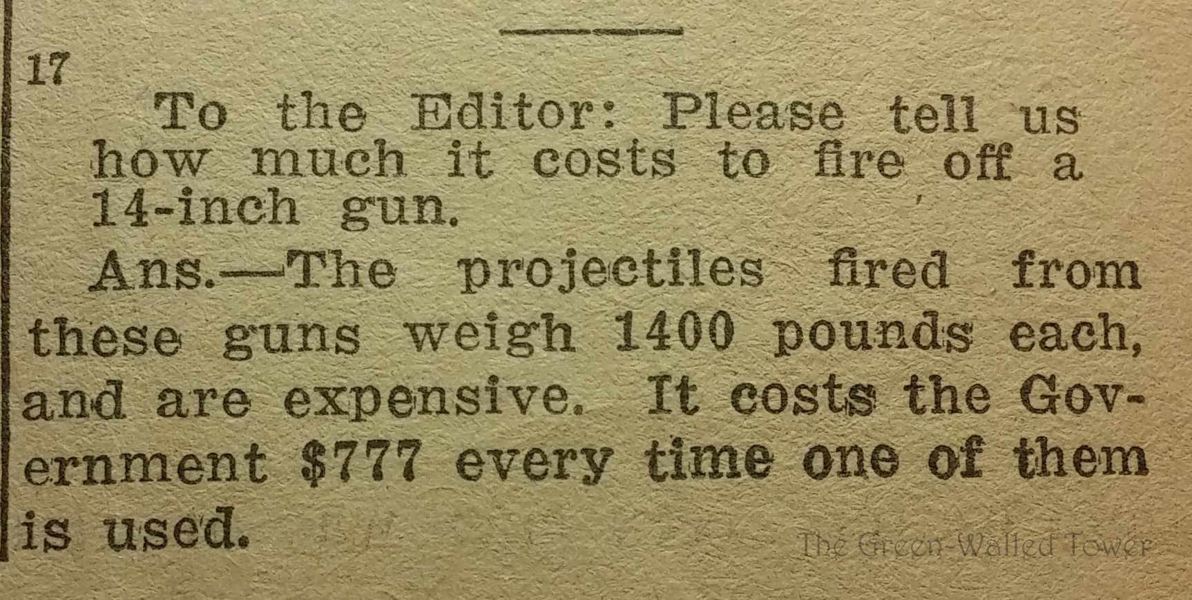 That is almost $18,000 per shot in today’s money. Apparently war has never been cheap.