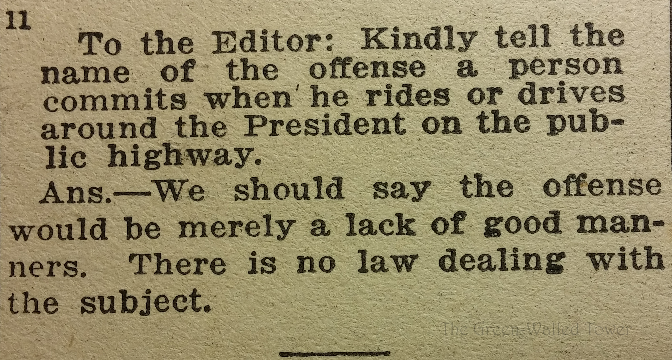 Methinks someone has a guilty conscience about cutting off President Woodrow Wilson on the highway.