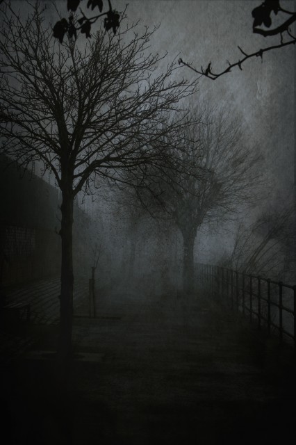 He wandered in a groggy early morning haze down the hallway, with its towering black walls of nothingness going up and up out of sight.