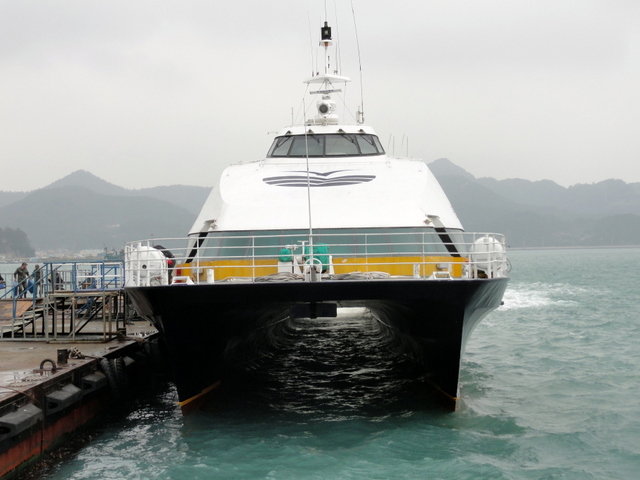I left here on Sunday and went down to the port city of Mokpo. The next day I took this ferry. It was very fast and the water was very rough, making it fun for me, until other people starting getting sick and throwing up. The guy behind me kept saying, “I’m dying. I’m dying. I want to live. I should have gotten off at the last island.”