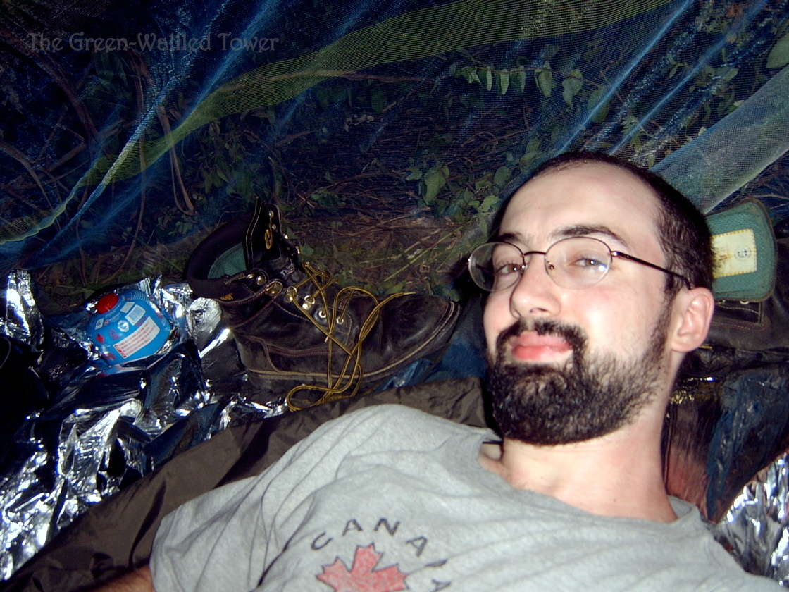 Of course, the most glaring drawback of mosquito netting is that it doesn’t do much in the rain. The weather that day had been absolutely perfect, overcast and cool but not rainy. However, as I lay down under my mosquito netting I saw the first flash of lightning off in the distance. I watched it far out over the water, silent because of the distance, and prayed it would turn aside.