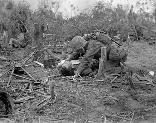Most of the rest of the squad was dead. A few must have survived, but if they had, they had already advanced. Was he going to die? How would he ever find a medic like this? He felt a wave of lightheadedness come over him. It had to be shock, unless it was the first signs of the final unconsciousness that he would never wake up from. He fought it, blinking his eyes furiously and pressing on the wound as tight as he could.