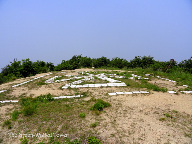 The path between the first and second mountains was much easier. For most of it, David walked along on a level, shady forest path. Here, there were more people (14 in all, and one dog). The second mountain peak Seobangsan was empty and barren and had a place for a helicopter to land. It was hot and David didn’t stay there long.